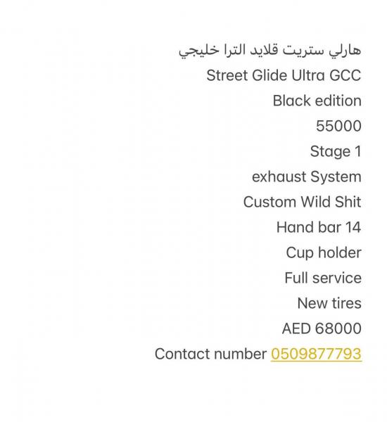 للبيع دراجة هارلي ستريت قلايد الترا موديل 2017 خليجي