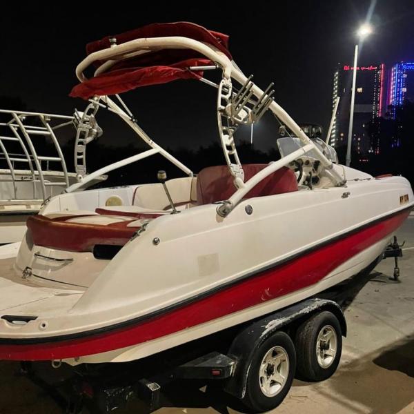 جت بوت امريكي 22 قدم نظيف يسع 9 اشخاص عليه مكينه ميركروز فيه مغسله ومسجل مع ليتات ويا القالوصه ومسرفس كامل بدون ضربات ولا شحفات .