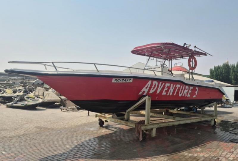 Dino 31 Fishing & Diving Boat 2014 Model L:31ft. W:8ft. Draft:2ft 12 pax capacity. Fuel tank :650lt. Fresh water: 250 Lt. Hydrolic steering , compass, shower, toilet, custom-made diving leather, extended T top SS canopy, outriggers, gunwale rod holders, deck lights, Garmin GPS, ICM 304 VHF. 2X Yamaha 200HP 4 stroke engines in good running conditions. 2400 hrs. PRICE 110,000 AED Whats up: +971 50 6495929