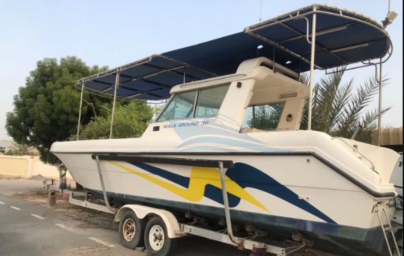 للبيع قارب walk around حجم 36 قدم صبغة المصنع + جهاز ملاحي + دورة مياه + ظلال استان استيل + جهاز ارسال + محركات هوندا 250&250 فور استورك ماشيات 1340 &1345 تقريباً صكة وكالة موديلات 2014 تقريباً او فوق +مقطورة غلف نايز مطلوب فيه 165000 الف درهم