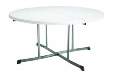 تُصنع الطاولات التجارية القابلة للطي ذات الحجم الدائري 60 بوصة من البولي إيثيلين عالي الكثافة وهي أقوى وأخف وزنًا وأكثر متانة من الخشب.