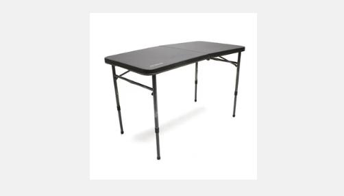 طاولات قابلة للطي مدمجة مع إعدادات ارتفاع متعددة لتناول الطعام وإعداد الطعام.