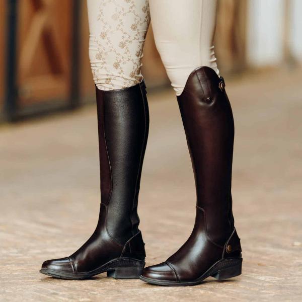 اختر هذه الأحذية الطويلة الكلاسيكية لإطلالة أنيقة في حلبة العرض. الجلد الأرجنتيني الأنيق ناعم وسيصبح أكثر راحة مع كل استخدام، بينما البطانة الشبكية قابلة للتنفس وستساعد في منع ارتفاع درجة حرارة قدميك. يوفر لك الجلد المطبوع على الساق الداخلية قبضة ممتازة، والنعل المطاطي الذي يحمل علامة Horze التجارية متين للغاية. يسمح السحاب الكامل في الخلف واللوحة المرنة بجانب السحاب بملاءمة مثالية. يحافظ الحزام الجلدي بأزرار كبس في الجزء العلوي والسفلي من السحاب على تثبيت هذا الحذاء بشكل آمن. شارة شعار "Z" الصغيرة اللامعة بلمسة نهائية من المعدن تزين شريط الساق وهي اللمسة النهائية المثالية.