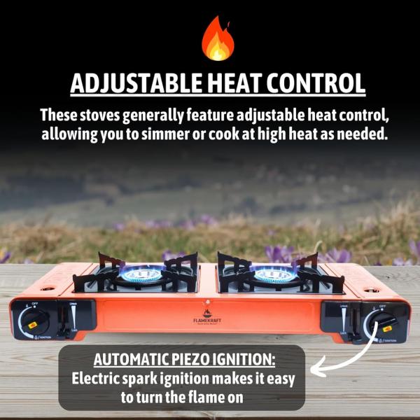 نظام إشعال بيزو أوتوماتيكي: يسمح الإشعال الكهربائي المريح بتنشيط اللهب بسرعة وسهولة، مما يجعل الموقد سهل الاستخدام ومثاليًا للطهي دون عناء.