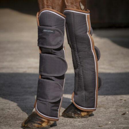 بوليستر مقاوم للتمزق 600 دينيير مقاوم للماء وجيد التهوية. بطانة إسفنجية بسمك 12 مم، وبطانة من جلد الغنم الصناعي بوزن 450 جرام. يتم تثبيته باستخدام 3 أشرطة عريضة ذاتية الإمساك.