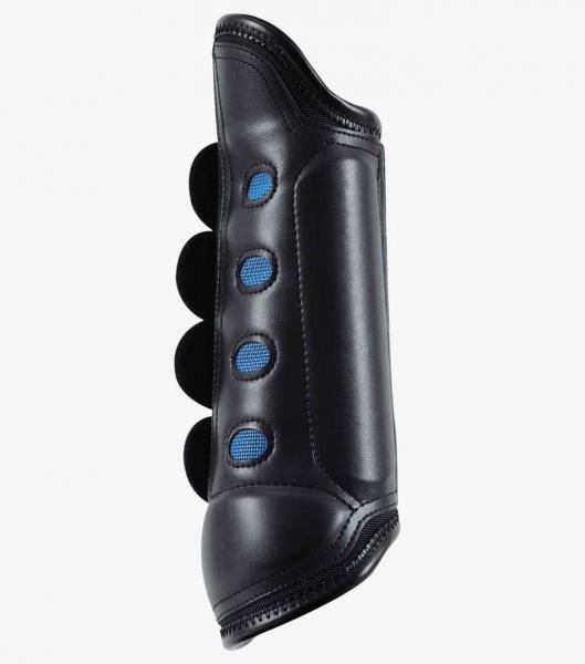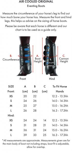 أحذية أمامية للمناسبات: تم تصميمها لتلتف حول الجلب دون إعاقة الحركة الطبيعية للحصان أثناء العدو أو القفز. يعمل حارس الضربات على الجزء الخلفي من الحذاء لحماية الأوتار والأربطة المهمة من الصدمات والإصابات التي يمكن الوصول إليها. 6 فتحات تهوية تسمح بمرور تيار مستمر من الهواء عبر الحذاء أثناء تحرك الحصان.