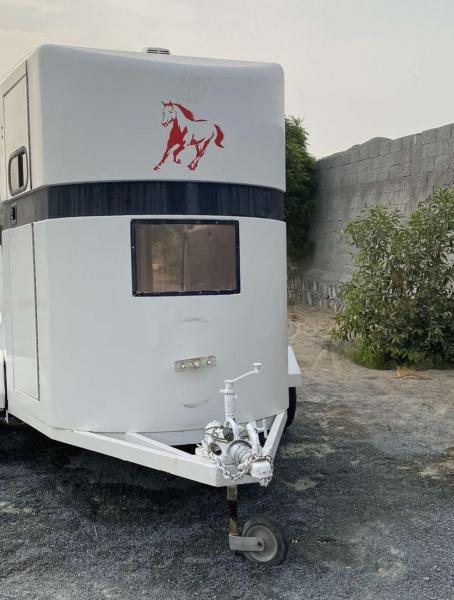 للبيع عربة نقل خيول مستعملة و فيها فتحتين تهويه و الحديد اللي ف الوسط قابل للإزاله يعني فك و تركيب و العربة مسجلة ،