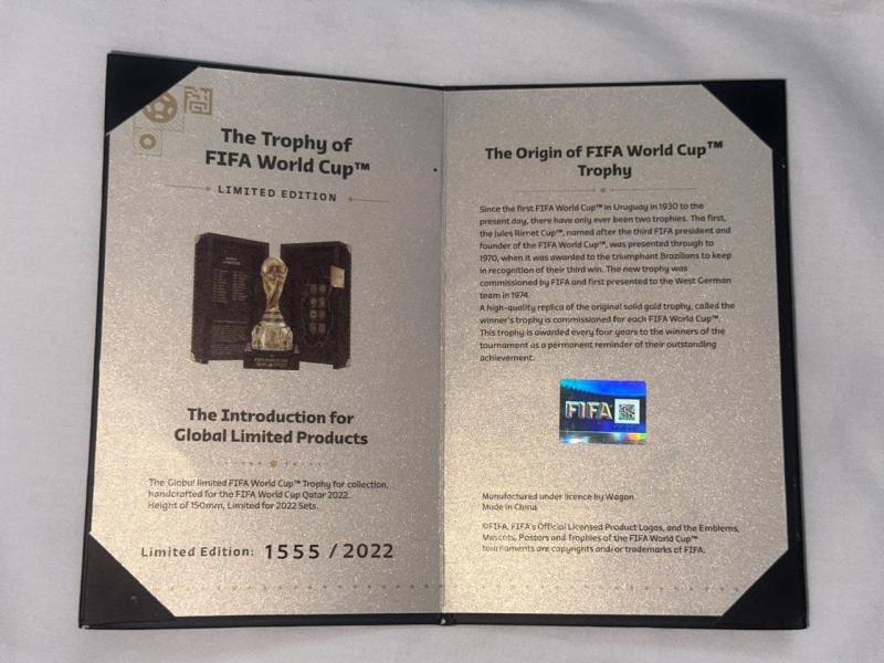 للبيع نسخه من كأس العالم المونديال القطري 2022 مع وثيقة من الفيفا