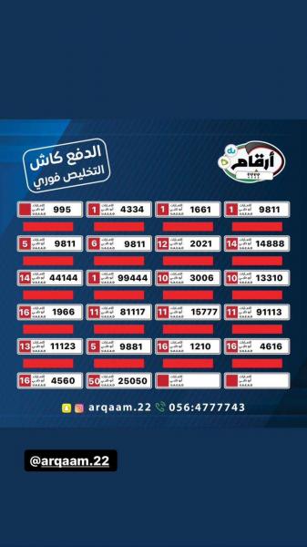 للبيع وشراء جميع الارقام مميزة الثنائية و الثلاثيةو رباعية و الخماسية
