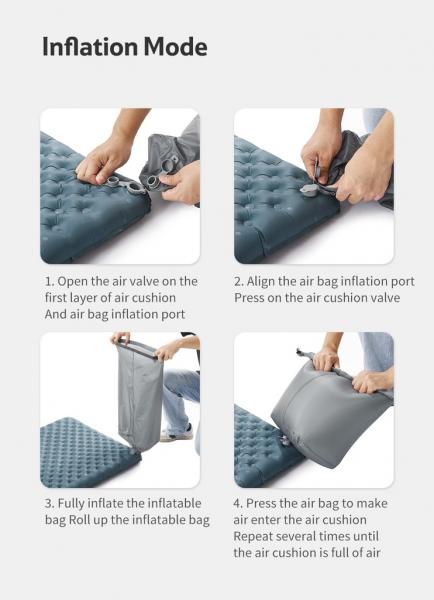 حقيبة نفخ الحجم: 52.5x42.5cm الحجم: 183x58x7cm (قياسي) / 168x58x7cm (صغير) حجم التعبئة: 10x10x18cm (قياسي) / 10x10x16cm