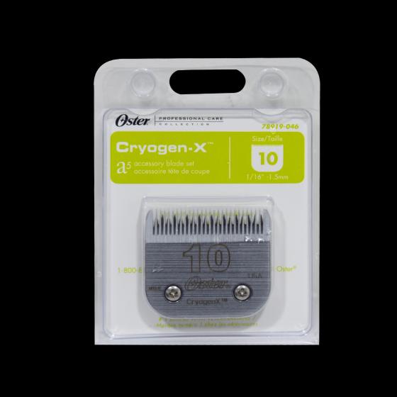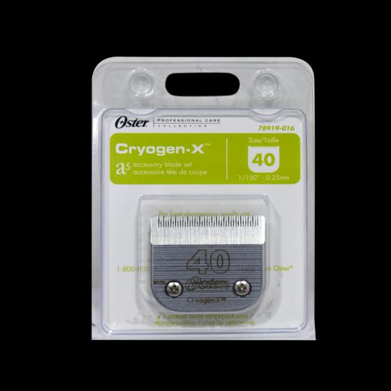 شفرات Oster Cryogen-X مصنوعة باستخدام عملية من 12 خطوة تضمن الجودة العالية والحرفية. تعمل عملية Cryogen-X الحاصلة على براءة اختراع من Oster على خفض الشفرات إلى -300o F مما ينتج شفرة أكثر صلابة ثم يتم لفها يدويا للحصول على تشطيب ناعم. حجم الشفرة 40 يترك المعطف 1/100 بوصة وهو شفرة رائعة للاستخدام عند استخدام مشط دليل لأطوال أطول. تترك الشفرة بحجم 10 المعطف 1/16 بوصة وهي أيضا خيار رائع عند استخدام أمشاط التوجيه لأطوال أطول.