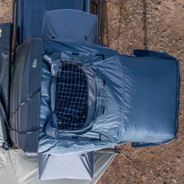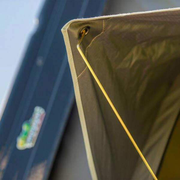 بنية متينة: يتميز الغلاف الخارجي الصلب بغطاء ABS مع إطار من الفولاذ المقاوم للصدأ. الخيمة مصنوعة من قماش بولي قطني 280gsm ripstop لراحة البال في الظروف الرطبة والعاصفة. يكتمل الإدخال بأغطية صلبة ممزقة وشبكة دقيقة مقاومة للحشرات بسحاب. تتم حماية نقطة الدخول الأمامية وكلا النافذتين الجانبيتين بواسطة مظلات مقنعة.