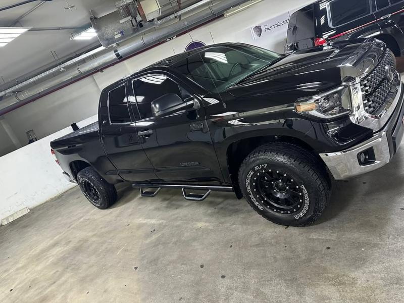 للبيع تويوتا تندرا موديل 2018 باب ونص اسود اللون ماشيه 50 الف ميل /مكينه الكبيرهV8 /كميرا خلفيه /تحديد المسار /نظام تراكشن كنترول / دواسات تي ار دي مع تواير بي اف رود سياره مسرفيس بالكامل