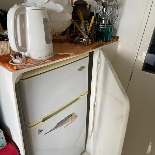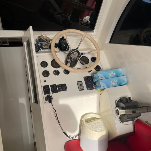 للبيع ميني يخت 26 قدم غرفة وصاله صغيره مع حمام عزكم الله وشاور ومغسله +مكيف مارين وجنيريتر هوندا وينش واتنكر ستان ستيل بدون مكاين مطلوب 40000