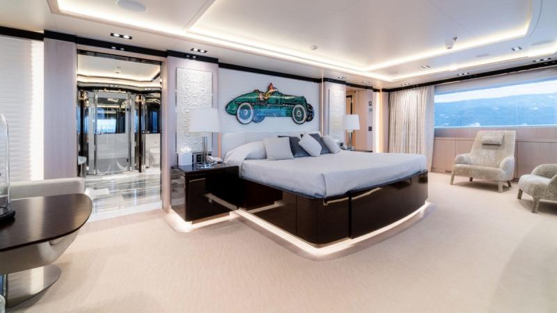 She is dedicated to up to twenty guests with a crew to satisfy every need. The owner’s suite is set on the Upper Deck. It is particularly spectacular with a king-size bed, closet and a luxury Jacuzzi. Further, a VIP suite is set on the Main Deck with a king-size bed, private cozy dedicated cinema room and his and hers dressing room and marble bath. The warm, light-colored interior of the yacht matches the excellent quality of her exterior, reflecting elegance and good taste. The large exterior decks offer endless sea views.