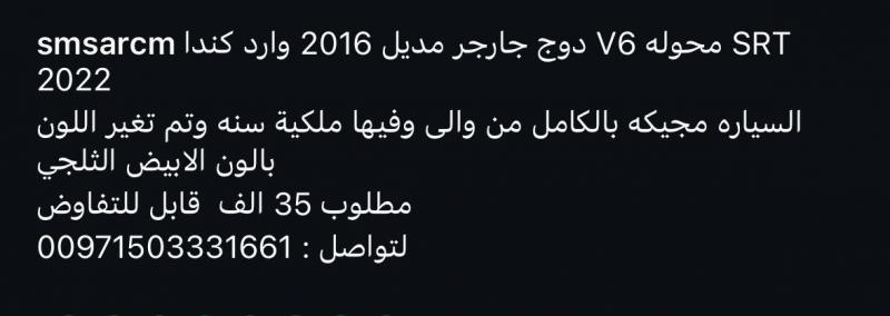 للبيع دوج تشارجر V6 موديل 2016 محوله SRT 2022 وارد كندا