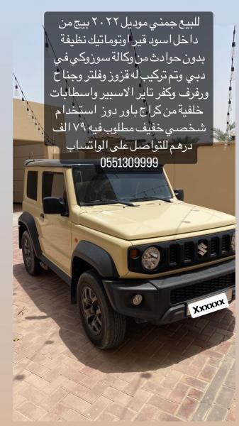 للبيع جمني موديل ٢٠٢٢ بيج من داخل اسود قير اونوماتيك نظيفة بدون حوادث وتم تركيب قدوز وفلتر وجناح ورفرف وكفر تاير الاسبير من كراج باور دوز استخدام خفيف مطلوب فيه ٧٩ الف درهم للتواصل واتساب